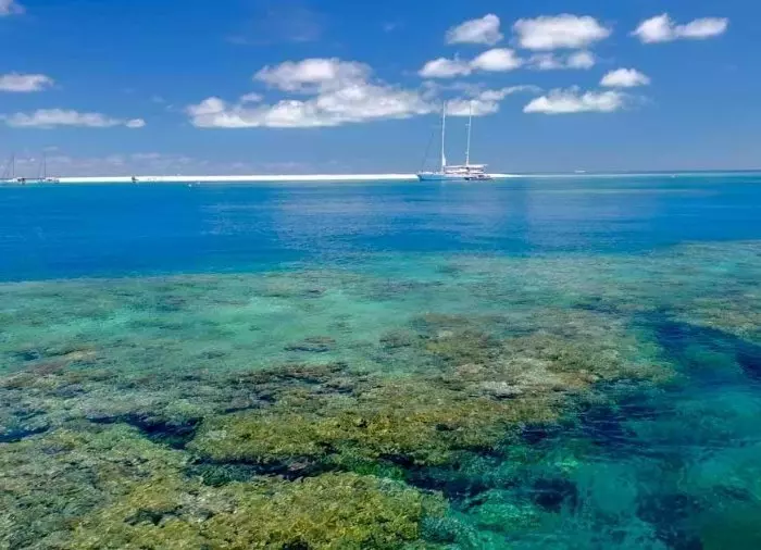 Seilturen ut hit tar omtrent to timer. Underveis serveres det formiddagskaffe, og en marinbiolog forteller om revet. Båten ligger for anker utenfor sandbanken, og de neste timene tilbringer du med å utforske det fantastiske korallrevet.