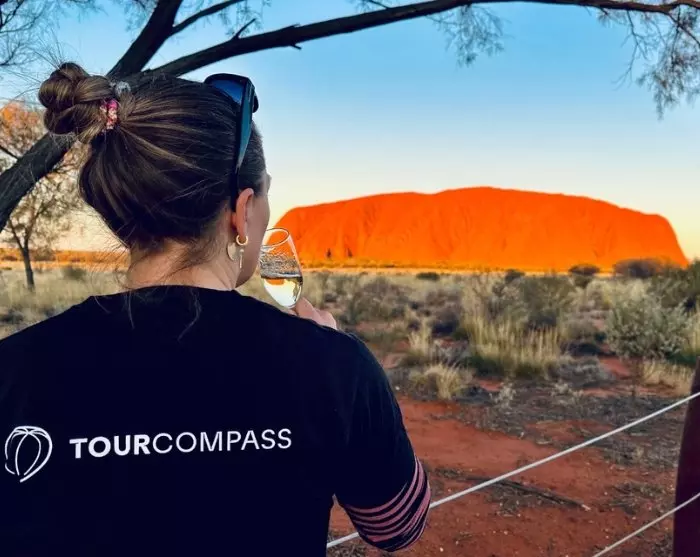 Når dagen går mot kveld, venter et av reisens absolutte høydepunkter: solnedgangen over Uluru. Det er en magisk opplevelse å se den majestetiske steinen skifte farge etter hvert som solen forsvinner i horisonten. Det er lett å forstå hvorfor dette området er så hellig for urbefolkningen, aboriginene.