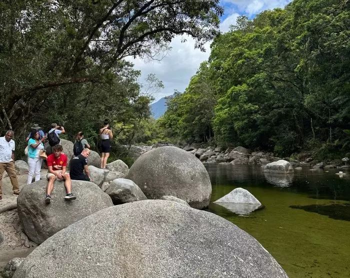 Du blir hentet på hotellet i Sydney og kjørt til flyplassen. Når du kommer til Cairns, blir du hentet og kjørt til hotellet ditt. Du merker raskt at du nå befinner deg i et tropisk klima, med høye temperaturer og høy luftfuktighet. Og det er utrolig frodig her! Hibiscus, frangipani, heliconia – området er fullt av eksotiske planter.