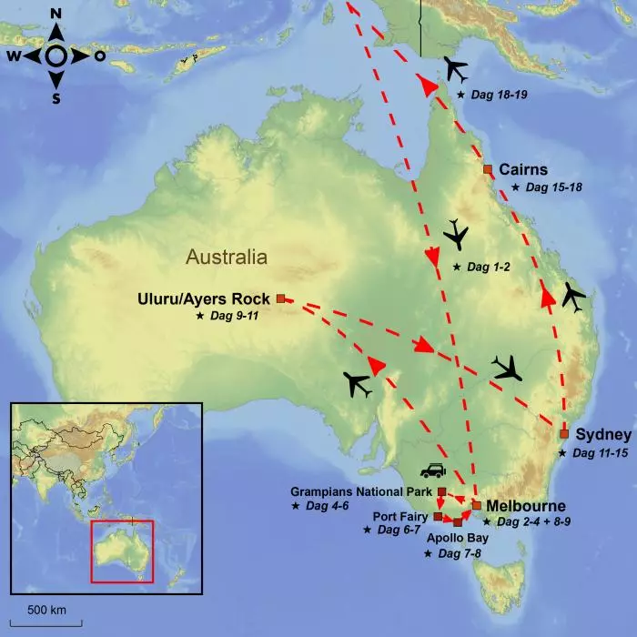 Her får du oppleve Australias to største byer, Melbourne og Sydney, den australske outbacken med den mytiske, gigantiske monolitten Uluru som rager majestetisk opp i landskapet og et fantastisk kjør-selv-eventyr på Great Ocean Road.