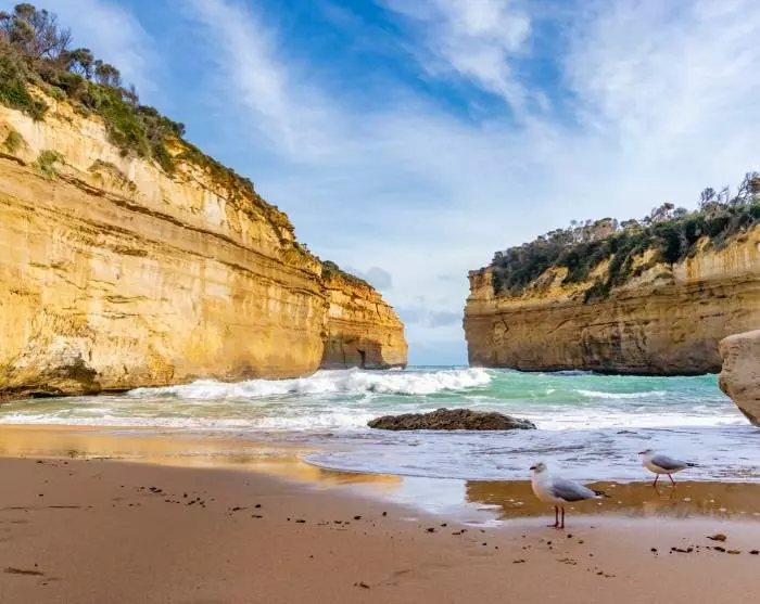Det mest spektakulære vartegnet på hele Victorias kyst, og det mest fotograferte, er uten tvil De tolv apostler. Men de tolv apostlene er i tidens løp blitt redusert til åtte, for havet “spiser” stadig av dem. Gled deg til å oppleve de spesielle kalksteinstoppene som rager opp av havet utenfor kysten. Det er et uforglemmelig syn.