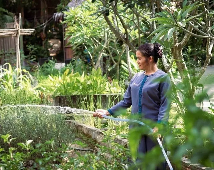 Santhiyas “Growing Green”-initiativ har som mål å minimere miljøpåvirkning gjennom innovative, grønne løsninger. Arkitekturen er inspirert av tradisjonell thailandsk byggestil og bygningene her er oppført i bærekraftig treverk. Økologiske grønnsaker og urter dyrkes i egne hager, noe som reduserer behovet for importerte varer og gir deg fersk, lokalprodusert mat. For å redusere ressursforbruket bruker Santhiya energibesparende løsninger som solenergi, LED-belysning og vannbesparende innretninger. I tillegg planter de trær på sitt eget område og fremmer kildesortering og gjenvinning for å fremme en sirkulær økonomi og redusere CO₂-avtrykket sitt.