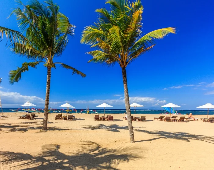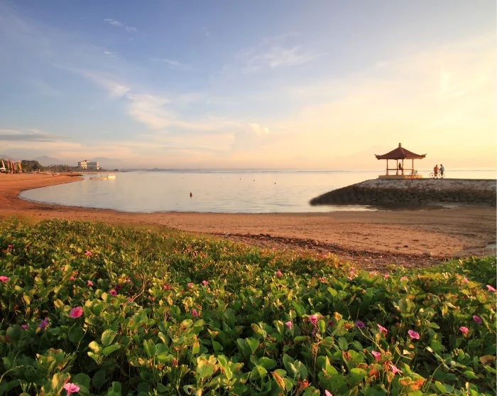 ligger ved kysten i den sydøstlige delen av Bali og er en av Balis absolutt mest populære badebyer. Her finner du kilometervis av flotte sandstrender, så her har du det perfekte reisemålet for en fin badeferie. Stranden er beskyttet av et korallrev, noe som gjør vannet rolig og stranden utrolig barnevennlig.