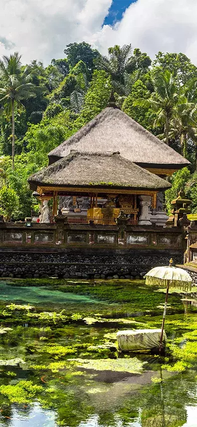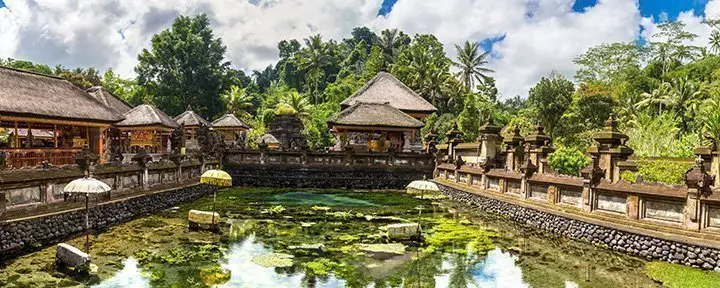 Første besøk er vanntempelet Tirta Empul i Tampaksiring, som ligger ved tolv naturlige kilder. Tempelet er utrolig vakkert med flotte skulpturer og fiskedammer fulle av karper. Hovedattraksjonen er bassenget med det hellige vannet, hvor du kan bade og få renset sjelen sammen med de lokale, som legger ned offergaver og tenner duftende røkelsespinner.