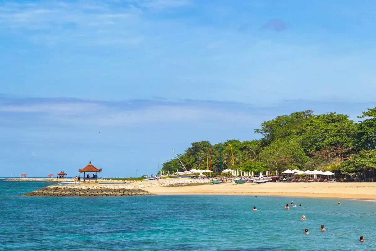 Sanur er Balis mest populære badeby, og har greid å bevare sin avslappede og hyggelige atmosfære. Byens store trekkplaster er den fem kilometer lange, brede og gyldne sandstranden, som er kjent for sine rolige, myke bølger. Stranden er nemlig beskyttet av et korallrev et stykke utenfor, noe som gjør den utrolig barnevennlig. Her kan du boltre deg i det varme vannet og nyte solen på en solseng, eller lese en god bok under de svaiende palmene.