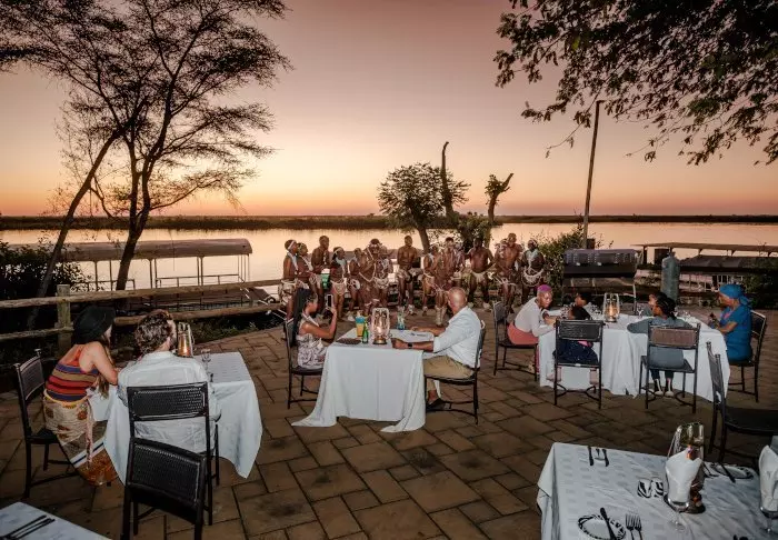Her er det en 250 meter lang boardwalk langs elven med flere utsiktsplattformer med myke stoler, halvskygge og en uforlignelig utsikt til Chobe-elven og områdets mangfoldige dyreliv. Nyt solnedgangen med en kjølig drink i hånden – få ting i verden er vakrere enn en solnedgang i Chobe nasjonalpark.