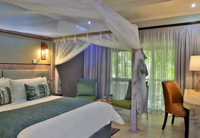 Alle rom har utsikt til Chobe-elven enten fra balkongen eller fra terrassen. I tillegg er det eget bad og toalett, aircondition, TV, sikkerhetsboks, te- og kaffefasiliteter, minibar og myggnett over alle sengene.