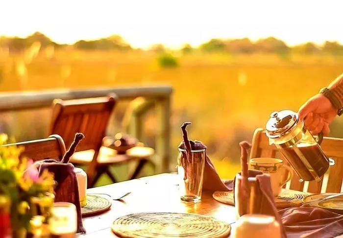 På den deilige terrassen med utsikt over Chobe River kan du spise frokost under de skyggefulle trærne før du begir deg ut på dagens eventyr. Det unike ved safariopplevelser i Chobe National Park er at man her både har muligheten til å bli med på tradisjonelle game drives på land og også kan oppleve naturen og dyrelivet fra vannsiden, på et cruise på elven Chobe.