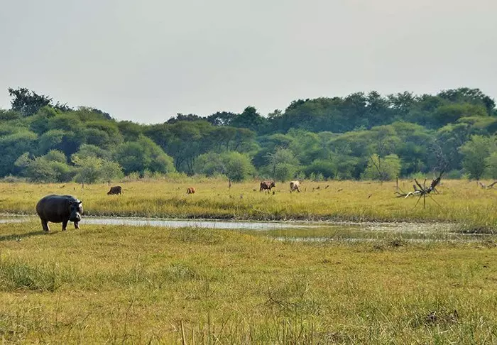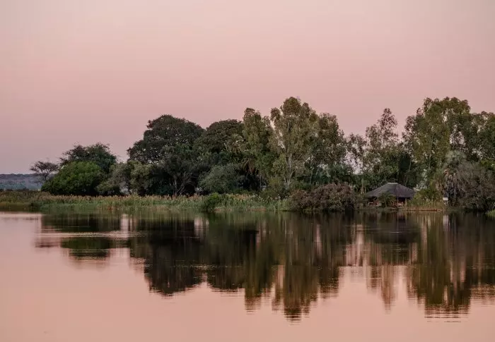 Det er lett å komme hit med båt. Cirka 15 minutters båttur fra den livlige byen Kasane kommer du til en helt annen verden! Før du kommer frem til lodgen må du i land og stemple passet ditt på det mikroskopiske grensekontoret som markerer Namibia. På Namibia-siden er det helt rolig. Lodgen ligger for seg selv, og det eneste du hører er fuglekvitter og gryntingen fra flodhestene.