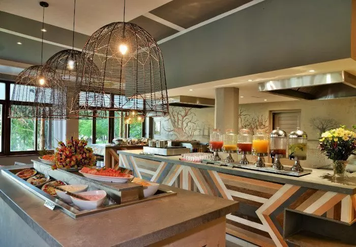 Restauranten serverer både à la carte-retter og buffet, og maten er meget god og utmerket tilberedt – ofte av lokale råvarer.