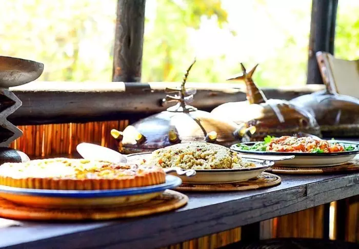 Lodgen har egen restaurant som serverer smakfulle nasjonale og internasjonale retter og vegetarmat.