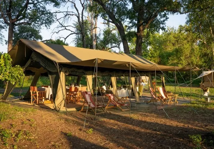 De to leirene ligger rett i nærheten av hverandre, men fungerer likevel som to forskjellige leire. Her venter det til sammen fjorten lekre telt, som alle virkelig ER klassiske safaritelt, men med elektrisitet (solceller), eget bad og privat utendørs dusj med varmt vann. Fra teltet har du utsikt mot elven eller den åpne savannen, og du kan være heldig å se dyrene komme forbi i løpet av dagen. Måltidene nytes i det trivelige messeteltet eller under åpen himmel, og om natten vekkes du nesten garantert av dyrelyder, som høres godt gjennom kanvasveggene i teltet.