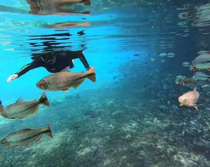 I Bonito venter det snorkling i krystallklare elver blant fargerike fisk og vannplanter og et besøk til det store synkehullet, Buraca das Araras, der de mørkrøde araene (Ara chloropterus) holder til og bygger reir i klippesprekkene.