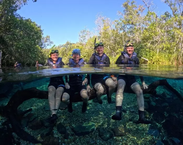 Turen starter med en liten kjøretur etterfulgt av en vandring på ca. 1,5 kilometer gjennom den frodige regnskogen før du ankommer elven. Guiden gir en detaljert innføring i hvordan man snorkler, slik at alle kan bli med selv om man aldri har snorklet før. Å se livet under vannskorpen på nært hold er en ubeskrivelig opplevelse. Noen steder kan du bare flyte med strømmen, mens du må svømme andre steder. Vanntemperaturen er på rundt 26 grader, og det å svømme blant fargerik fisk og frodige vannplanter er en helt unik opplevelse – det føles som om du er i et stort akvarium!