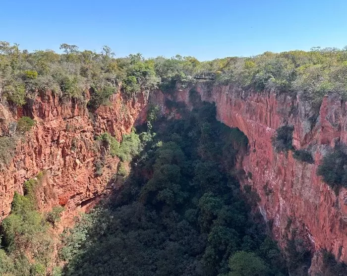 Fra det krystallklare elvevannet går turen videre til Buraco das Araras, som er et stort synkehull med omkrets på hele 500 meter og en dybde på omtrent 100 meter. Synkehullet ligger i storslåtte naturomgivelser, men hovedattraksjonen er de vakre og kraksende arapapegøyene som bor her og bygger reir i bergsprekkene.