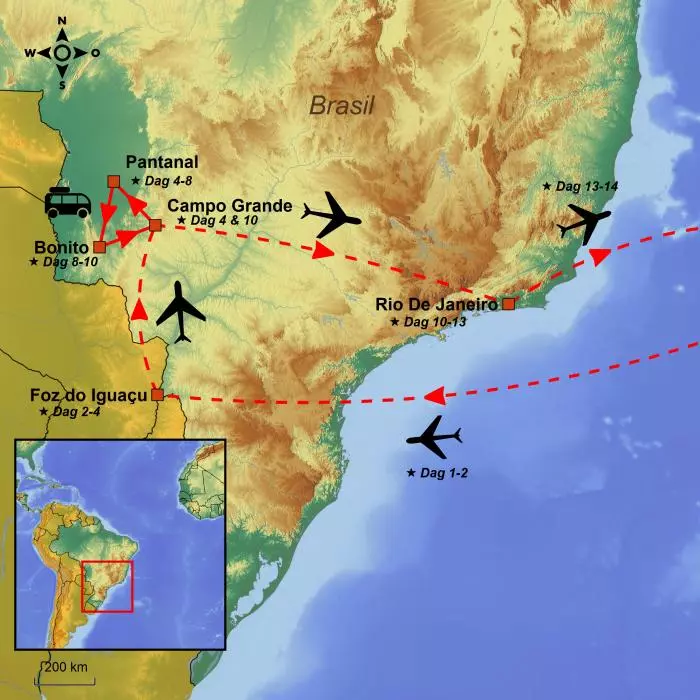 Få natur- og dyreopplevelser i verdensklasse i våtmarkene Pantanal. Svøm i Bonitos krystallklare elver og opplev det imponerende Iguazúfallet. Turen avsluttes i magiske Rio de Janeiro.