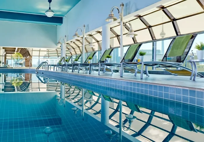 På hotellets øverste etasje finner du et innendørs, oppvarmet svømmebasseng for voksne og en solterrasse, der du enkelt kan lade opp med en god bok eller et glass vin i rolige omgivelser. Herfra har du flott utsikt over byens tak og ikke minst det ikoniske landemerket CN Tower, som rager opp i bybildet.