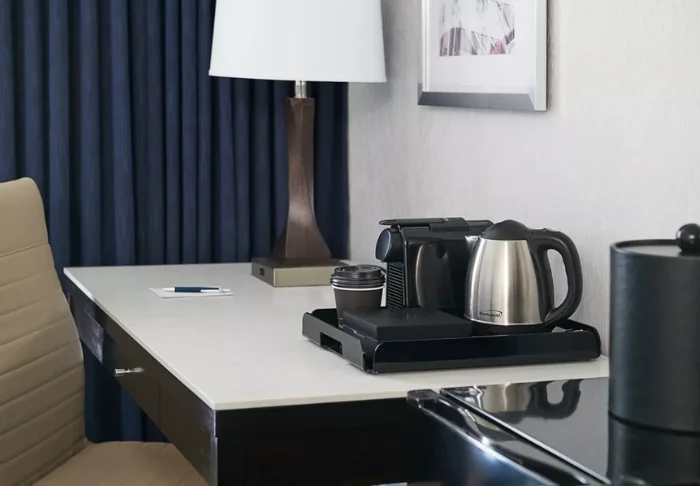 Når du blir sulten, kan du velge blant flere spisesteder på hotellet, som tilbyr noe for alle dagens måltider. Her finner du både en restaurant med europeiske og canadiske retter, samt en kafé hvor du kan ta med deg en kaffe på farten.