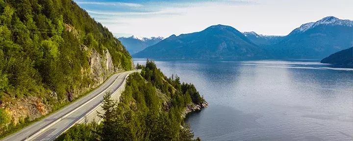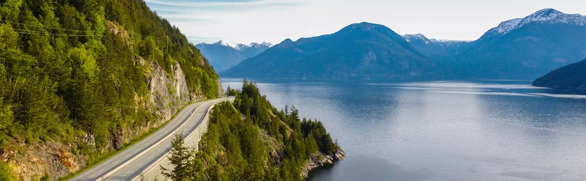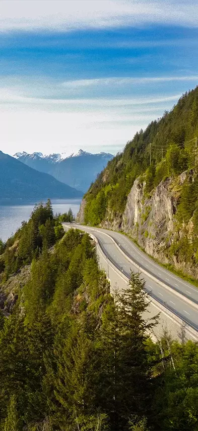 Selv om du til nå allerede har kjørt langs flere ikoniske veier, er dagens strekning på drøyt 1,5 time intet unntak. Fra Whistler følger du Highway 99 – best kjent som «Sea to Sky Highway». Som navnet tilsier, får du oppleve kontrasten mellom hav og fjelltinder i dag. Ruten tar deg fra Whistlers fjell til dype fjorder.