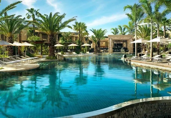 Spaet og svømmebassenget ligger på sin egen øy i havnen og er nærmest omgitt av en tropisk hage – midt i byen. I loungen kan du nyte en cocktail med utsikt mot Table Mountain mens du venter på et bord på Afrikas eneste Nobu-restaurant – den er populær, så bestill i god tid.