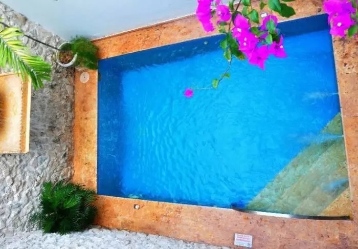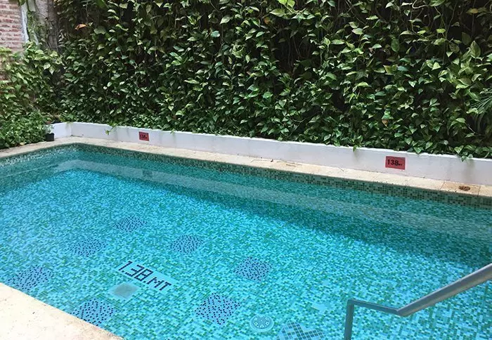 I midten av hotellet er det et lite svømmebasseng, der du kan ta deg en forfriskende dukkert i Cartagenas middagshete.