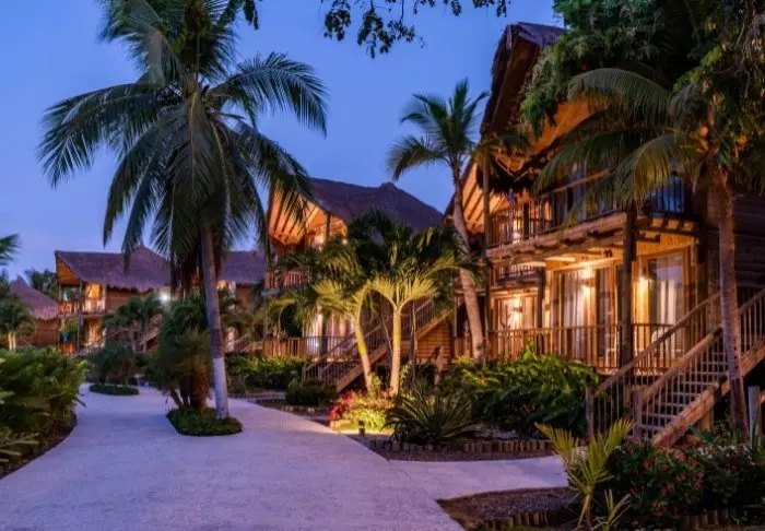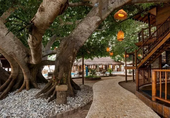 Hotellet ligger i en tropisk hage med palmetrær og mangroveskog og har sin egen private strand, slik at du kan glede deg til å våkne opp til synet av det turkisblå vannet og lyden av bølgene som rolig slår mot kysten.