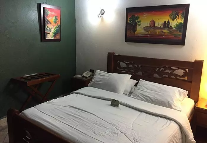 Hotellet har kun 19 rom. De er enkelt innredet, men pene og rene, og alle har aircondition, Wi-Fi, minibar og eget bad med toalettartikler.
