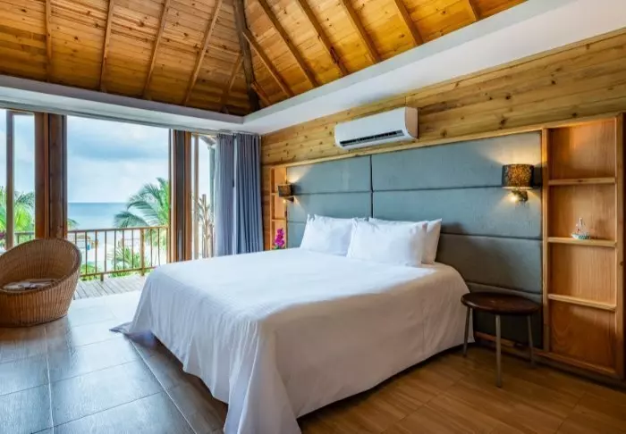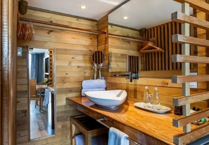 Hotellet har kun 42 rom, så du er sikret et hyggelig, personlig opphold. Alle rommene er bygget i tre og bambus, noe som passer godt inn i de naturlige omgivelsene. Rommene har aircondition, Wi-Fi, satellitt-TV, minibar/kjøleskap, sikkerhetsboks og eget bad med toalettartikler.