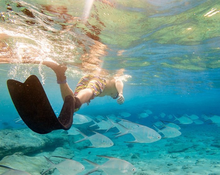 Her kan du svømme, snorkle, padle kajakk eller bare slappe av i solen og kose deg med god mat og eksotiske drinker.