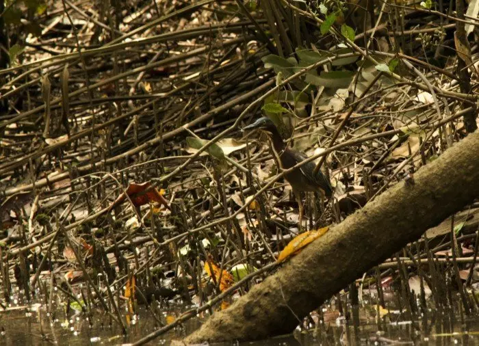 Så fører guiden deg på vannveiene gjennom den tropiske mangroveskogen, og den er full av liv. Mens du padler i skyggen av bladene fra de høye grønne trærne får du se alle de flotte mangrovetrærne med deres imponerende røtter og de eksotiske dyrene og plantene som lever blant trærne.
