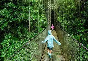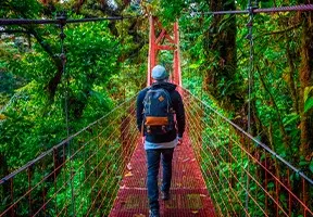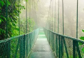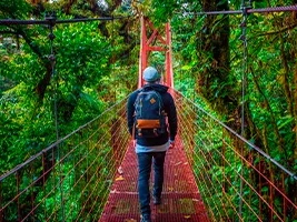I Monteverde kan du oppleve den mystiske tåkeregnskogen ovenfra, på en vandring på hengebroer som er spent mellom tretoppene. Her kiler det herlig i magen!