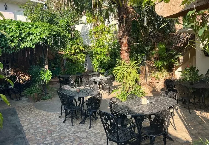 I den hyggelige bakhagen kan du ta deg en matbit på hotellets restaurant eller en mojito i baren i ro og mak. Du kan også sitte og se på folkelivet på Plaza de la Solidaridad mens du spiser frokost, lunsj eller middag på hotellets restaurant som både har et innendørs og et utendørs område.