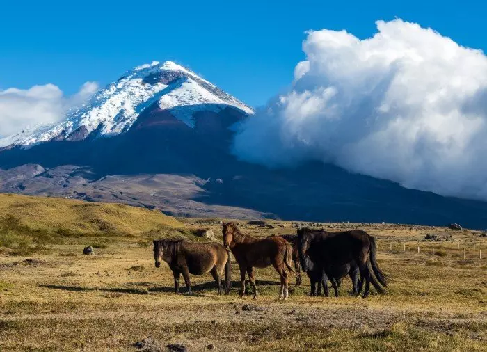 Når du går rundt i parken, har du hele tiden den mektige Cotopaxi-vulkanen ved siden av deg, og det er en av verdens høyeste aktive vulkaner.