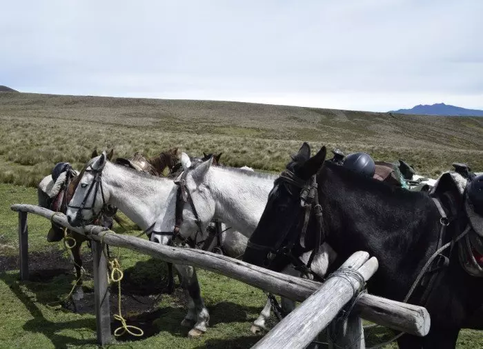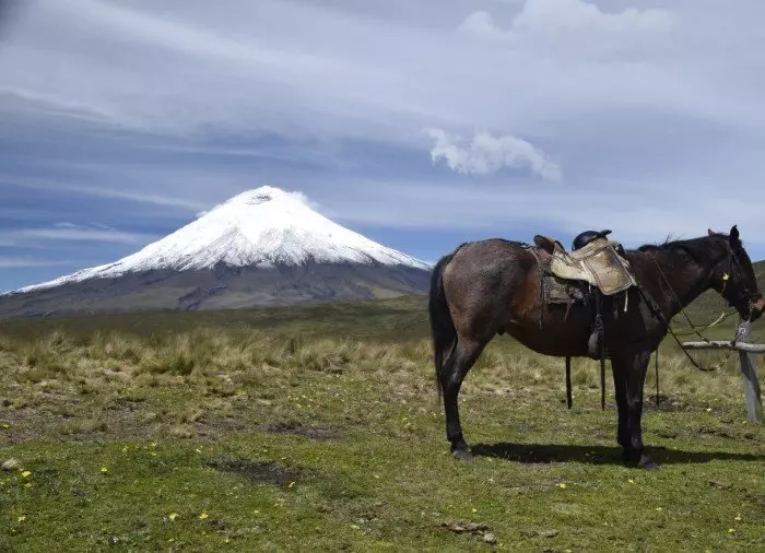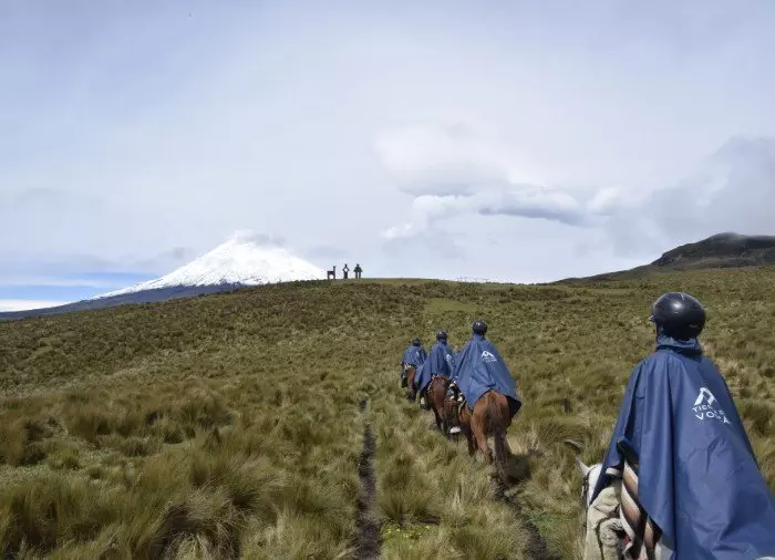 Hesten klatrer oppover fjellsiden på den utslukte Rumiñahui-vulkanen, mens du kan nyte livet og beundre den flotte naturen. Her er du omgitt av høye fjell og vulkaner, og i klart vær er det en ubeskrivelig utsikt til den snødekte Cotopaxi-vulkanen.
