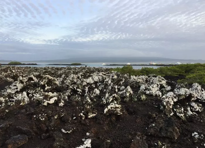Du blir hentet på hotellet ditt i Puerto Villamil og kjørt til havnen. Herfra seiler du ut til småøyene Las Tintoreras, som ligger ganske nær Puerto Villamil. Først går du i land på en av øyene, der en liten enkel fottur på ca. 15 minutter fører deg til en lagune der det lever nyfødte sjøløver og hvittippede revhaier. På klippene ligger haviguanene nesten oppå hverandre og hviler seg.