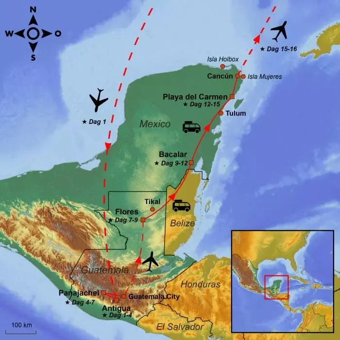 Bli med på en eventyrlig reise der du opplever Guatemalas koloniale sjarm i Antigua, seiler på den vakre Atitlán-innsjøen, utforsker de majestetiske maya-ruinene i Tikal og nyter lagunens ro i Bacalar – før du runder av med avslappende stranddager ved Det karibiske hav i Playa del Carmen.