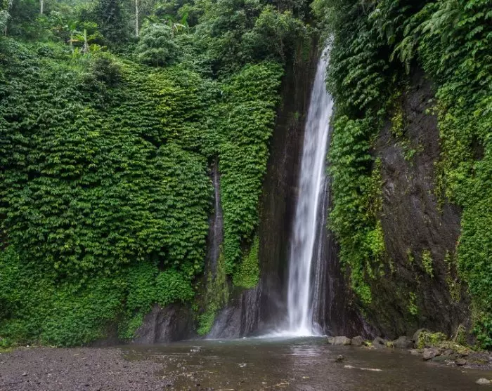 Utflukten fortsetter til den mindre kjente fossen Bhuana Sari. I motsetning til Red Coral vil du her oppleve flere kaskader som faller ned den grønnkledde klippen – et syn som bare ber om å bli udødeliggjort med kameraet ditt.