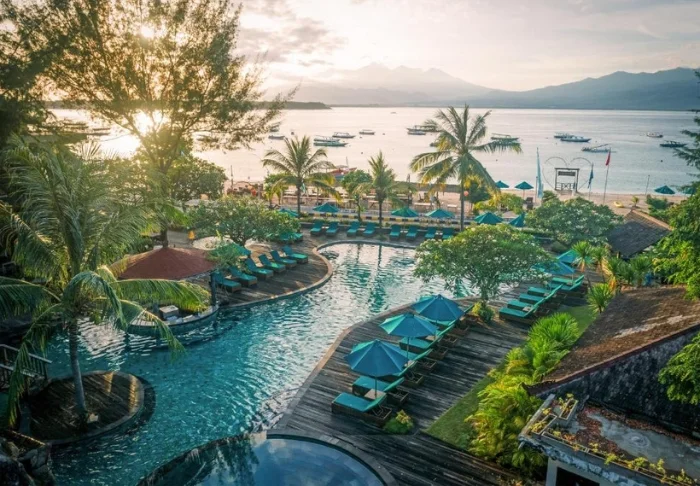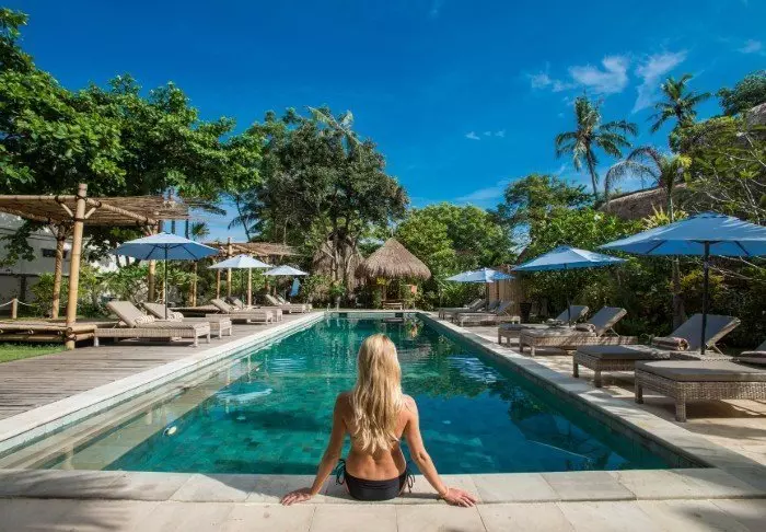 På Gili Trawangans sørspiss ligger det luksuriøse hotellet Pondok Santi Estate. Hotellet ble bygget i 2005, på området til en gammel kokosplantasje som i dag er blitt til en frodig, tropisk hage.