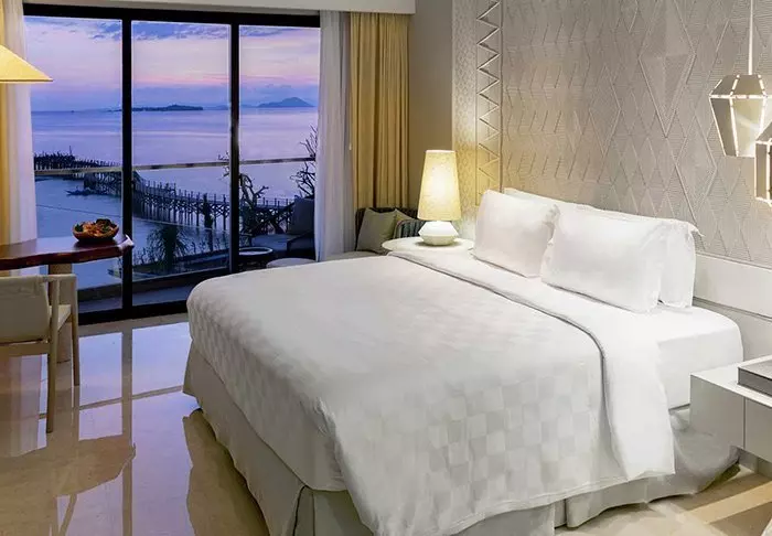 Resortets 205 rom er stilfullt innredet med møbler og moderne dekor i lyse farger, som komplimenteres perfekt av det naturlige lyset som siver inn fra de store vinduene. Hvert rom er min. 43 m2 og har sin egen private balkong hvor du kan innta den fantastiske havutsikten og de gyldne fargene fra solnedgangen. I tillegg er alle rommene utstyrt med aircondition, Wi-Fi, LED TV, walk-in-skap, minibar og kaffe-/tefasiliteter. På badet er det hårføner, samt separat regndusj og badekar.