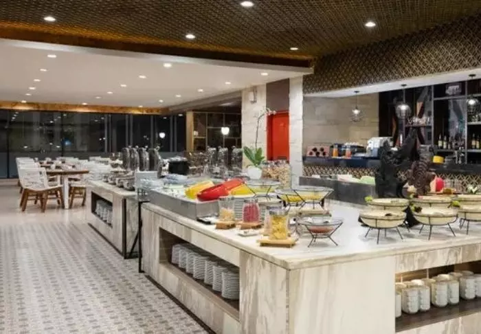Når du blir sulten, serverer hotellets restaurant et utvalg lokale og internasjonale retter su kan spise med panoramautsikt over stranden.