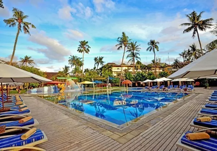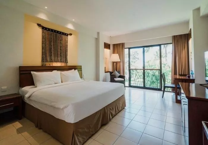 Mercure Bali Sanur Resort ligger rett ved en av Sanurs aller beste strender – en rolig, bred sandstrand med grunt vann og svalende palmeskygge. Resortet strekker seg over fem hektar med tropisk hage, der svaiende palmer og små stier snor seg mellom balinesiske bygninger med tradisjonelle alang alang-tak. Her bor du i fredelige omgivelser, samtidig som du har kort vei til Sanurs koselige gågate med kafeer, butikker og restauranter.