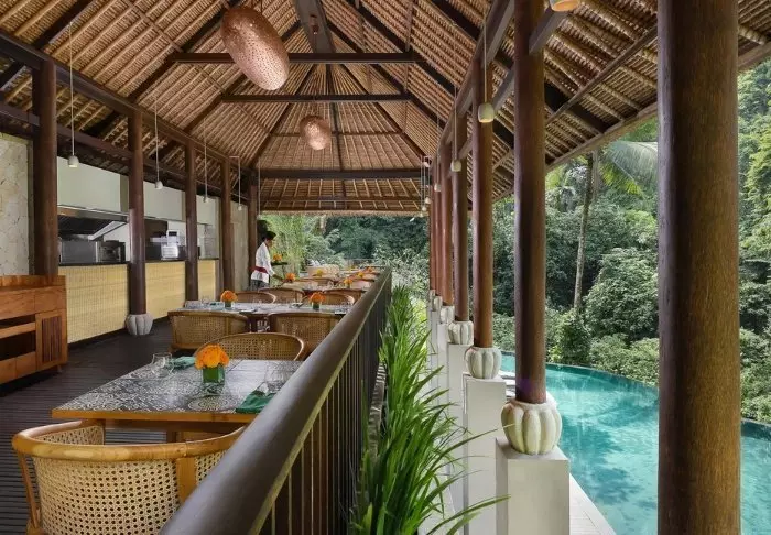 Når du blir sulten etter en opplevelsesrik dag, kan du glede smaksløkene med en kulinarisk opplevelse fra det lokale eller internasjonale kjøkkenet på en av hotellets tre restauranter. Du kan også nyte en iskald drink i hotellbaren, Tree Bar, med utsikt til Ubuds frodige natur.