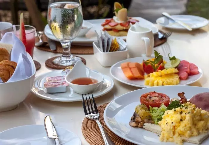 Når sulten melder seg, byr resortet på flere gode alternativer. Hovedrestauranten, Pandawa Restaurant, serverer en variert frokostbuffé med både internasjonale retter, nybakte fristelser og egge-stasjon. Til lunsj og middag tilbyr menyen alt fra friske salater til saftige sirloin-steaks og ferskfanget sjømat.