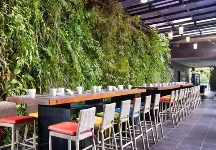 Hotellets restaurant serverer en variert meny med både lokale og internasjonale retter tilberedt med ferske råvarer fra lokalområdet. Her kan du nyte måltidene dine med utsikt over de frodige plantasjene i området.