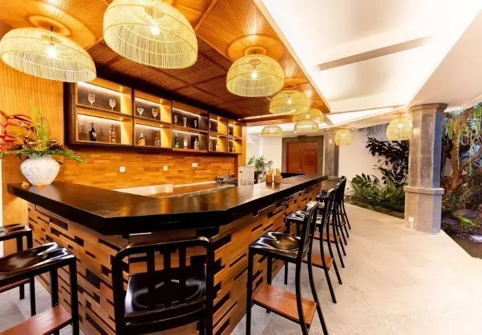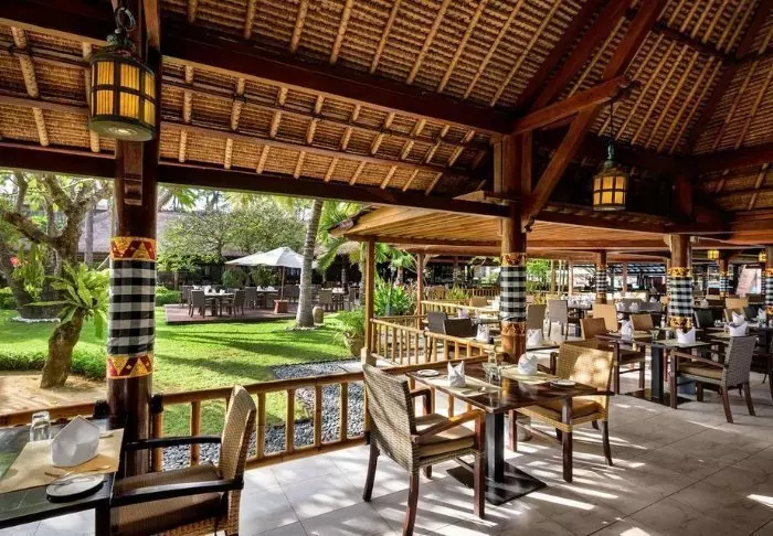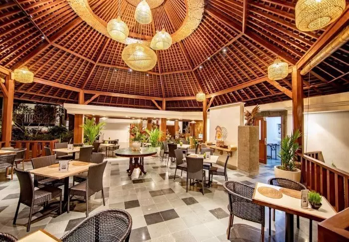 Hotellet har også en herlig liten restaurant der du kan utforske balinesisk mat og internasjonale favoritter – enten innendørs eller utendørs under åpen himmel.