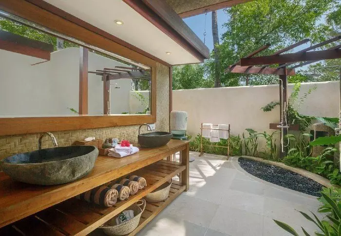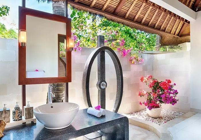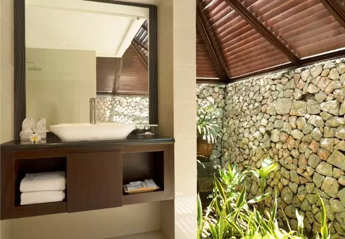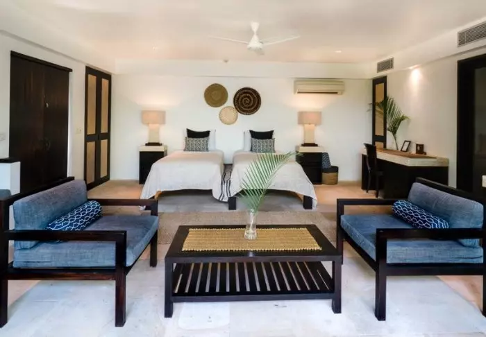 Batu Karang er oppført i rustikke materialer som harmonerer flott med de tropiske omgivelsene. Stilen er en blanding av moderne og tradisjonelt, og dette går også igjen i resortens 37 innbydende villaer og suiter. De er innredet med lyse vegger, flotte steingulv og fine, mørke tremøbler som bidrar til å gi en varm og hyggelig atmosfære.