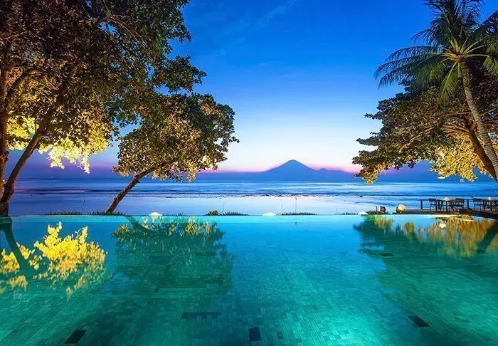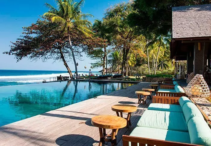 Etter en herlig dag kan du avslutte kvelden med en forfriskende drink i baren mens solen sakte går ned over Lombok-stredet.