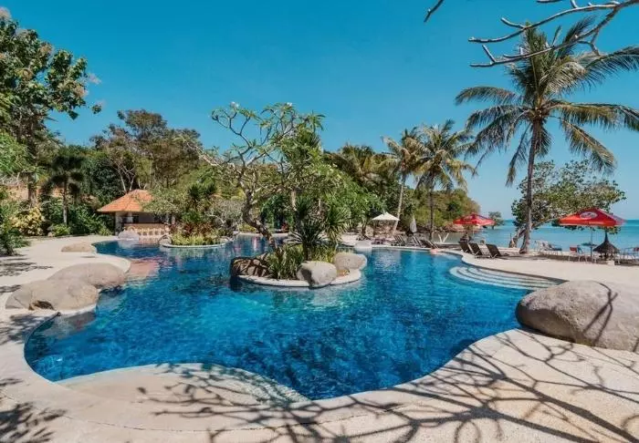 Pondok Santi Estate har privat strand med liggestoler og hengekøyer der du kan sole deg og skue ut over det turkisblå havet. Et par meter fra strandkanten er det gode snorklemuligheter, for under havoverflaten finner du fargerike koraller og fisker.