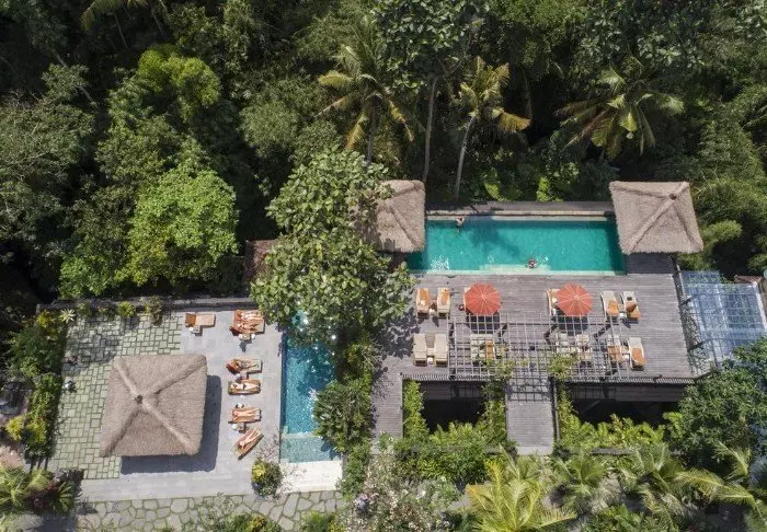 Adiwana Resort Jembawan skjuler seg i Ubuds tette jungel omgitt av elver, høye tropiske trær og palmer. Selv om det føles som du er langt borte fra sivilisasjonen, ligger hovedgaten, Ubud Market og Ubud Palace i gåavstand.