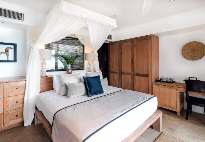 Hotellet består av 18 private bungalower bygget i tropisk stil av bærekraftige og naturlige materialer. Alle bungalower har en elegant himmelseng med myggnett, Wi-Fi, aircondition, minibar, te- og kaffefasiliteter samt delvis åpent bad med dusj, badekåpe og hårtørker. På verandaen kan du slappe av med en god bok og nyte den behagelige brisen.